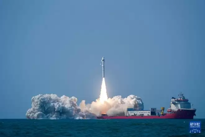 2月12日14时37分,我国太原卫星发射中心在广东阳江附近海域使用捷龙三号运载火箭,成功将巴基斯坦PRSC-EO2卫星、港中大一号卫星、电力红外卫星A星、数天宇星03-05星、空间环境监测卫星共7颗卫星发射升空,卫星顺利进入预定轨道,发射任务取得圆满成功。新华社发(郭金珵 摄)
