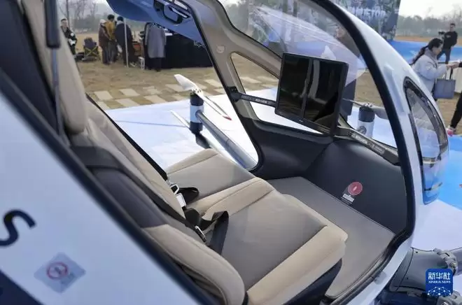 图为静态展示的eVTOL飞行器内饰(2026年2月13日摄)。当天上午,这架由四川省低空经济产业发展有限公司运营的电动垂直起降飞行器,从成都锦江区"智飞中心"起飞,在80米低空完成十分钟悬停后安全着陆。本次飞行创造了成都主城区eVTOL载人验证飞行的新纪录。新华社记者 刘坤 摄