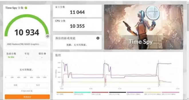 先回顾一下8060S的理论测试成绩:Time Spy跑分达到了11044分,一般RTX 4060跑分在10500左右,最高的在11000分;而最新的RTX 5060在12500分左右;N-2代的RTX 3060,则在8500分左右。