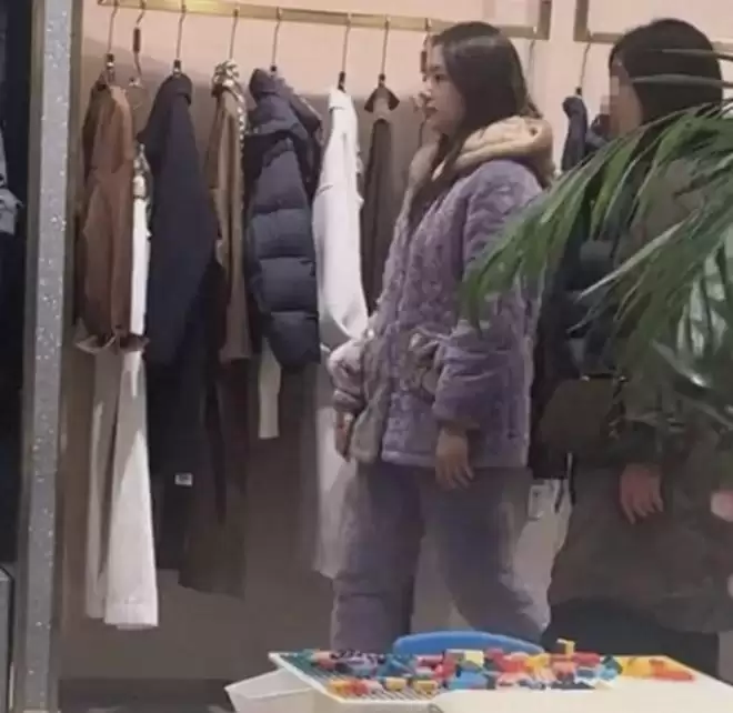 从网友上传的偶遇照片中可以看到,任敏身穿紫色加绒带帽睡衣和同色的加绒睡裤,一身穿搭格外“经典”,在商场高级精致的氛围中让人感到割裂感十足。