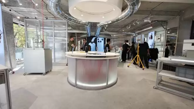 Nothing旗舰店整体采用模块化设计,所有展示桌都根据实际需要自由组合、重新布局。品牌创始人Akis Evangelidis对此表示,他们希望借此呈现一种"协作空间"而非传统商店。为此店内甚至设有DJ表演台、创作者工作室,二楼还带有专门的开箱区,顾客买完手机后可以直接上楼拍摄上手视频。