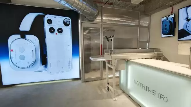 走进Nothing旗舰店的大门可以看到,这家门店带有鲜明的工业风格,整体氛围有一种当今少见的"原始感"。最新消息称这种设计灵感源于20世纪70年代的工厂流水线,并且为了强化这一理念,顾客购买的所有商品都会通过吊顶的传送带送出,看起来确实很吸睛。