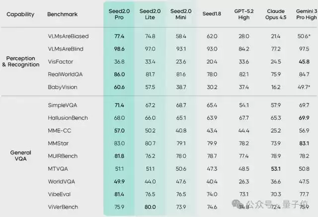 并且在VLMsAreBiased、VLMsAreBlind、BabyVision等基准中,豆包大模型2.0取得了业界最高分!