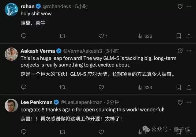但毕竟Claude Opus是闭源,护城河一下子被GLM-5这个开源模型给端掉,也是引得不少网友欢呼: