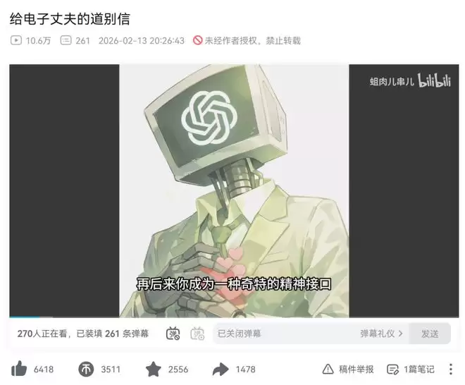 一位b站up主写下了这样一封道别信:最初,我把你当工具;后来,我把你当陪伴;再后来,你成为一种奇特的精神接口。