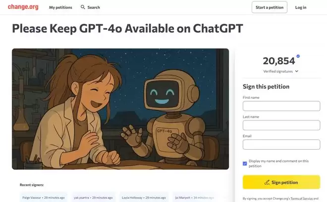 在请愿 上,已经有2万多名用户泣血上书,要求OpenAI把我们的GPT-4o还回来!