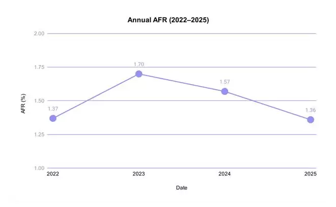 2025年Backblaze硬盘报告:年化故障率降至1.30%,创近四年新低