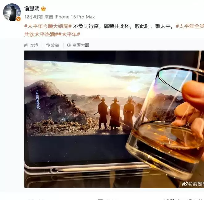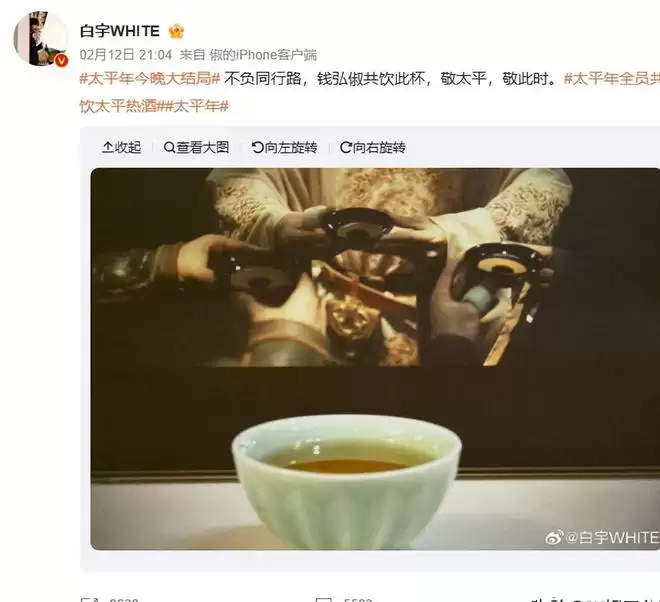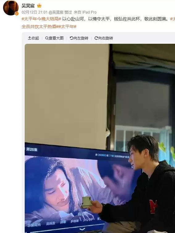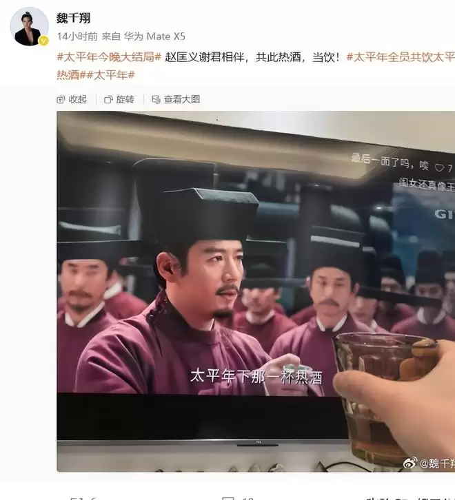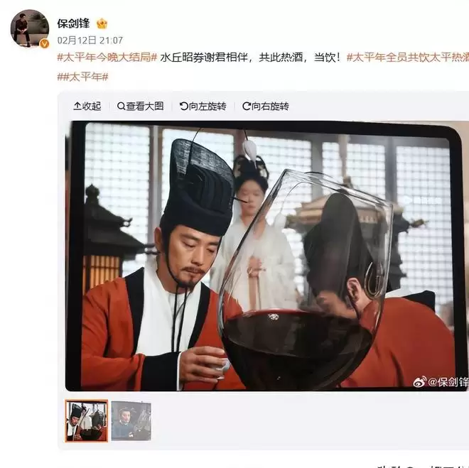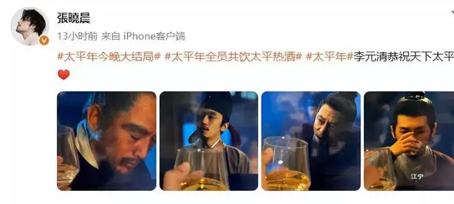 为了契合剧情中的“太平酒”,《太平年》在大结局之后,也是向演员们发起了一个挑战,大家一起共饮太平热酒。