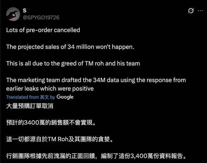与此同时,另一位消息人士@SPYGO19726也表示,大量消费者取消了Galaxy S26系列的预购订单。三星此前预期的3400万台销量目标恐难实现,而这一切都源于“卢泰文及其团队的贪婪”(IT之家注:卢泰文为三星MX事业部负责人),其团队根据先前泄露的正面反馈设定了3400万台的销售目标。