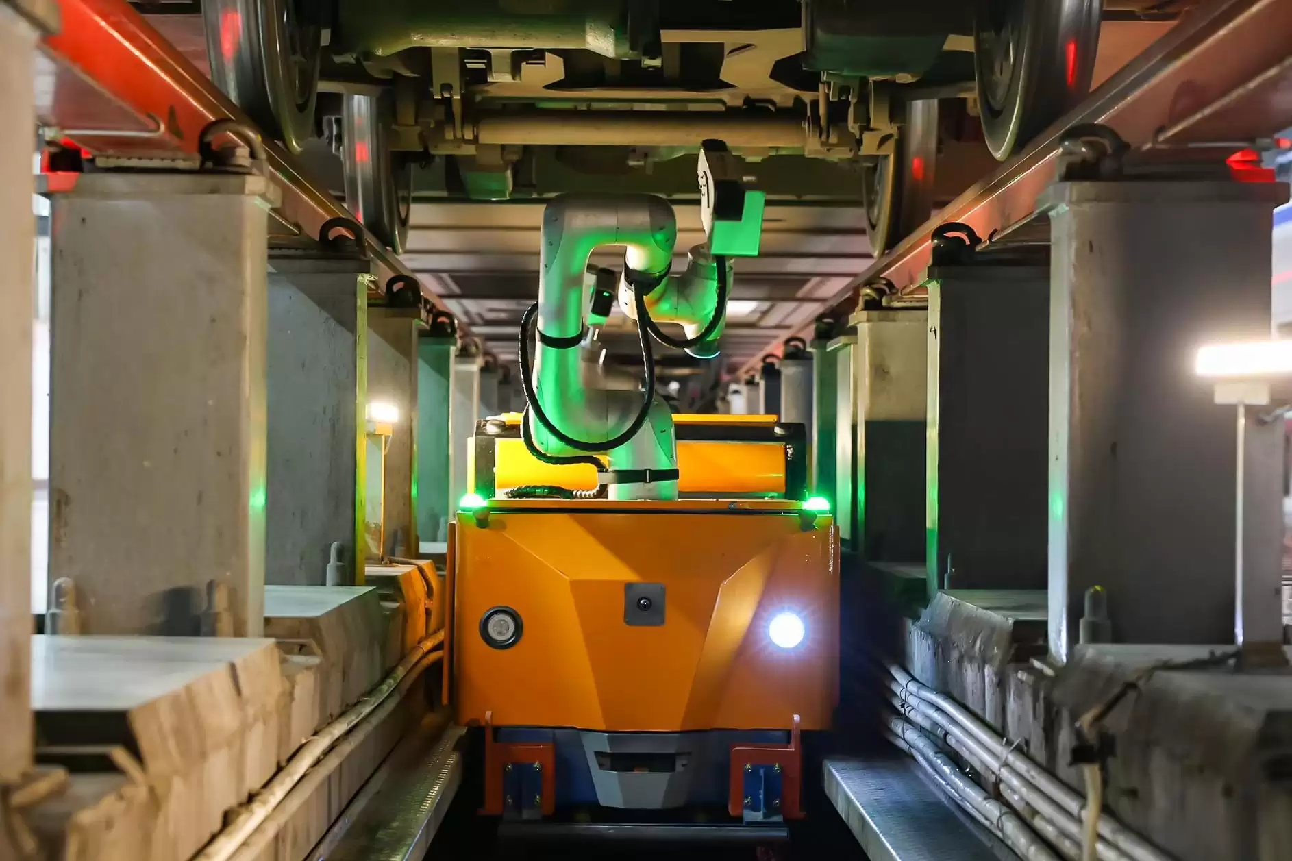 福州南动车所检修库里,一台橙黄色机器人正滑入车底。机械臂搭载高清探头,对转向架、车底螺栓进行毫米级全景扫描。地勤机械师韩志超盯着屏幕,机器人传回的图像与系统图库高速比对,任何细微裂纹、松动都被红框精准标出。“以前拿手电照、靠经验找,现在AI直接告诉你‘这儿有问题’。”韩志超说,“关键故障识别率高,检修效率大幅提升,这意味着更多列车可以准点出库。”