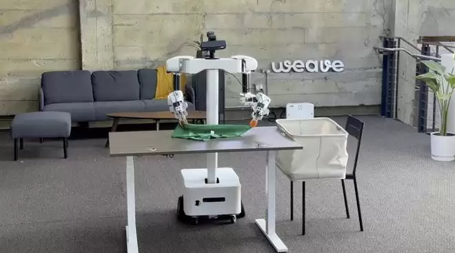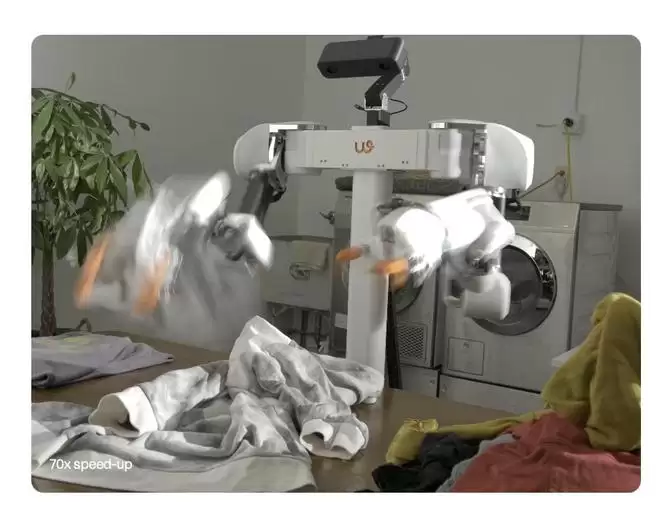 从最新披露的信息来看,Weave Robotics 的产品采用双臂结构,具备一定程度的空间感知与物体识别能力,能够将洗好的衣物展开、折叠并叠放整齐。演示视频里,它动作稳定、流畅;但问题是,这个演示视频有着明显的加速抽帧痕迹。