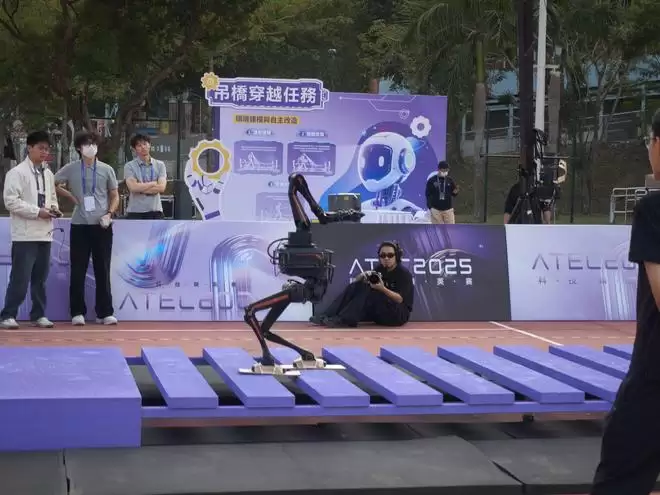 在 ATEC 赛事现场,大多数参赛队伍即使是项目间的转场,也必须使用龙门吊来运输人形机器人。但绝大多数的轮式机器人都能自主完成转场——轮式底盘可以在相同电池容量下获得更长续航时间,并为上半身双臂与算力平台分配更多电量。