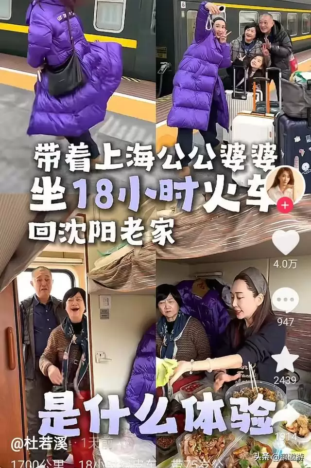 杜若溪携公婆回娘家过年,18小时绿皮车上的全家福