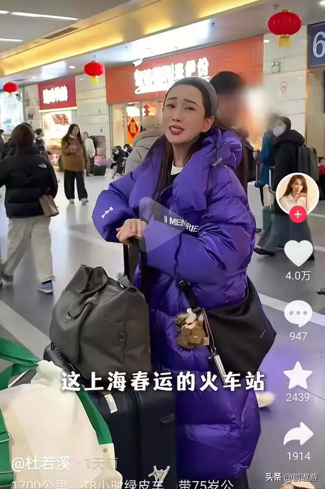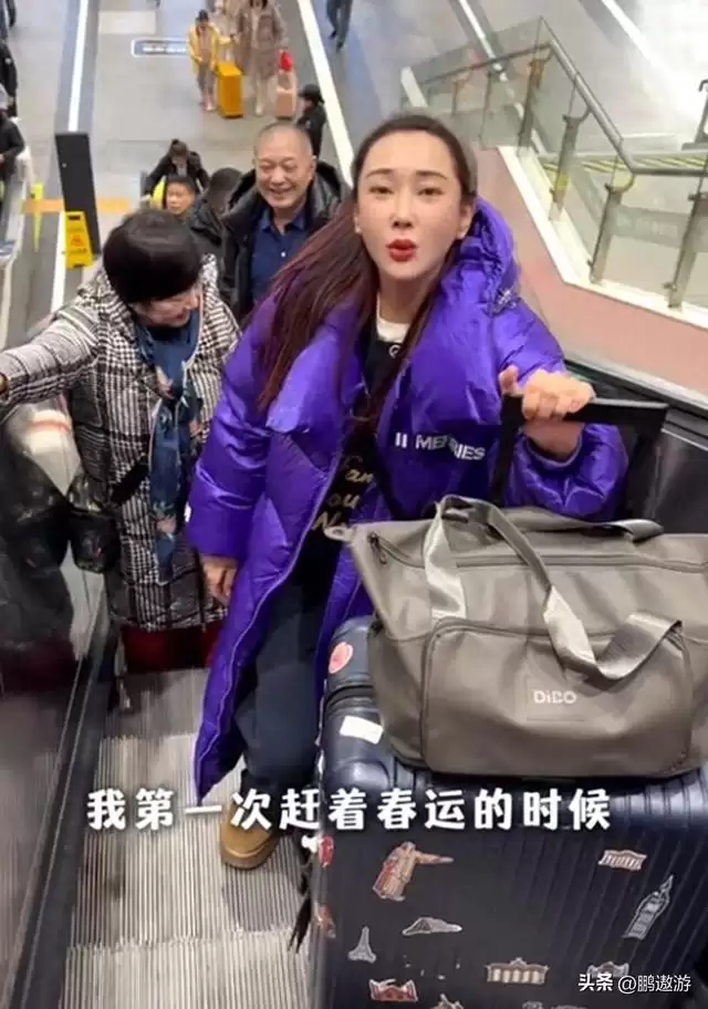 在摩肩接踵的人群中,演员杜若溪带着公婆和孩子也踏上了返乡的旅程。