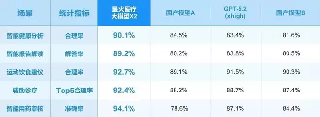 2月11日,科大讯飞发布基于全国产算力训练的星火X2大模型,通用能力实现代际跃升,推理性能相比上一代提升50%,在数学、推理、语言理解等核心能力上对标国际顶尖水平。这一底座升级直接决定了其上生长的医疗垂类模型能走多远。