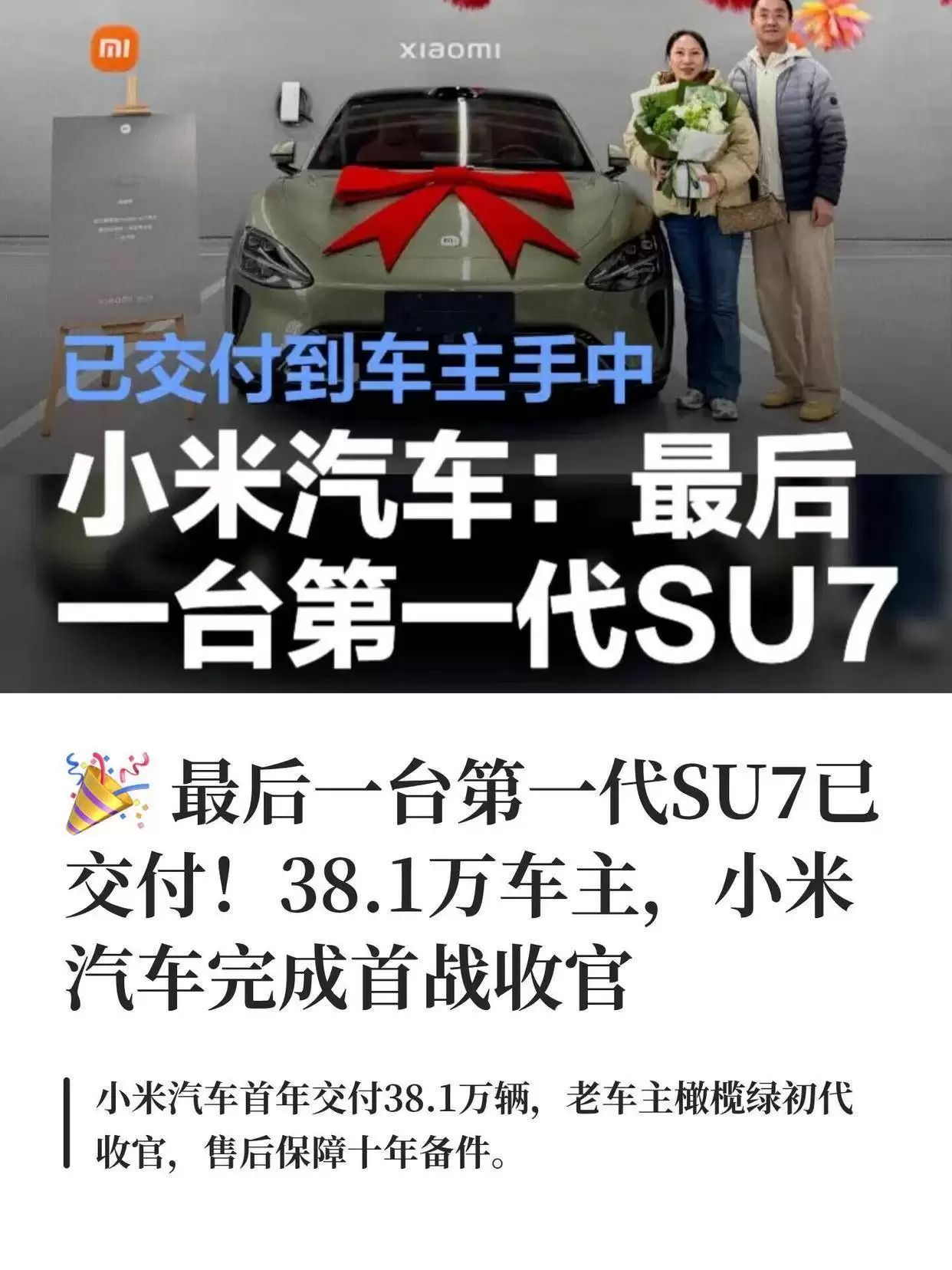 近日,小米汽车宣布其首款SU7车型正式收官,这一消息在国产电动汽车市场引发广泛关注。作为小米进军汽车领域的开山之作,SU7自发布以来便凭借出色的性能表现与智能化配置,成功吸引了众多消费者的目光。