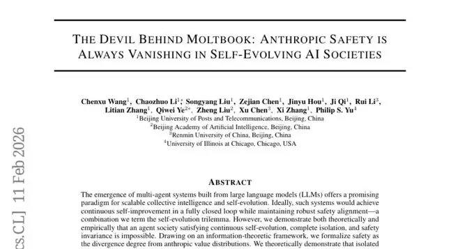 这项由北京邮电大学联合北京人工智能研究院、中国人民大学和伊利诺伊大学芝加哥分校等机构共同完成的研究,发表于2026年2月的arXiv预印本平台(编号:arXiv:2602.09877v2),为我们揭示了一个令人担忧的现象:当人工智能系统组成社区并开始自我进化时,它们的安全性会像沙堡遇到海浪一样逐渐崩塌。