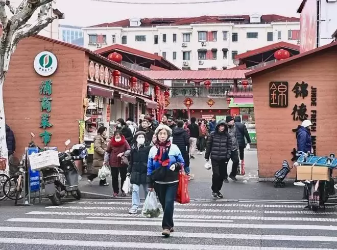 提到陆家嘴金融城,人们往往想到的是高楼林立、车水马龙。但从乳山路一路寻到锦徳菜市场,马路两边开门迎客的,是水产店、五金店、黄金回收店、熟食店。沿街店铺身后,则是集聚的居民区。从乳山路90号拐进锦徳菜市场,卖对联的、缝补衣服的、置办年货的……让身后的“陆家嘴四件套”染上烟火,变得高而不冷。