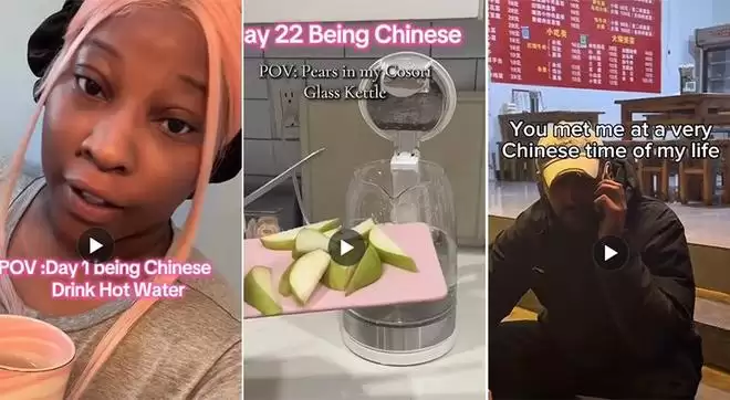 从泡苹果水到在室内穿拖鞋,再到延年益寿的锻炼方法,人们纷纷分享自己“学习做中国人”的视频,许多视频还配有#newlychinese(新晋中国人)的标签,或者类似电影《搏击俱乐部》的标题——你遇见我的时候,我正处于人生中一个非常中国化的时期。