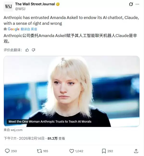 IT之家 2 月 15 日消息,据《华尔街日报》昨日报道,Anthropic 内部有着一名特殊的员工,主要负责为 AI 聊天机器人 Claude 塑造人格与道德。这就是 Anthropic 常驻哲学家阿曼达 · 阿斯克尔(Amanda Askell)。