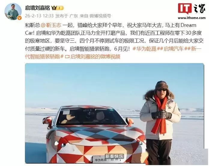 启灵与华为乾崑攻坚极寒测试,新车6月高质量上市
