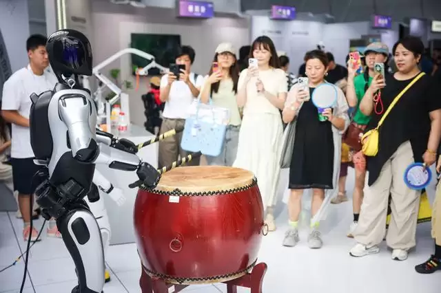 智元机器人敲鼓表演。
