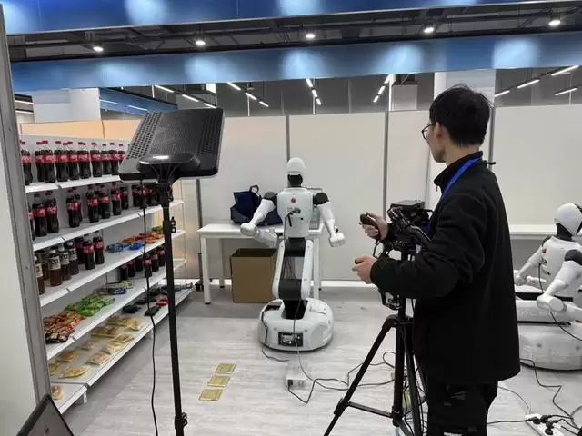 有的动作看似简单,可对机器人来说却是一个反复练习的过程。需要采集员使用遥操设备带着机器人做练习,训练中产生的各种数据会被摄像头捕捉记录下来,形成优化模型的数据集。一位采集员笑称,这个过程像是带着机器人“刷题”,主要目的就是要把成千上万的数据喂进机器人的“大脑”,让它学会举一反三,以便在实际生产生活中随机应变。