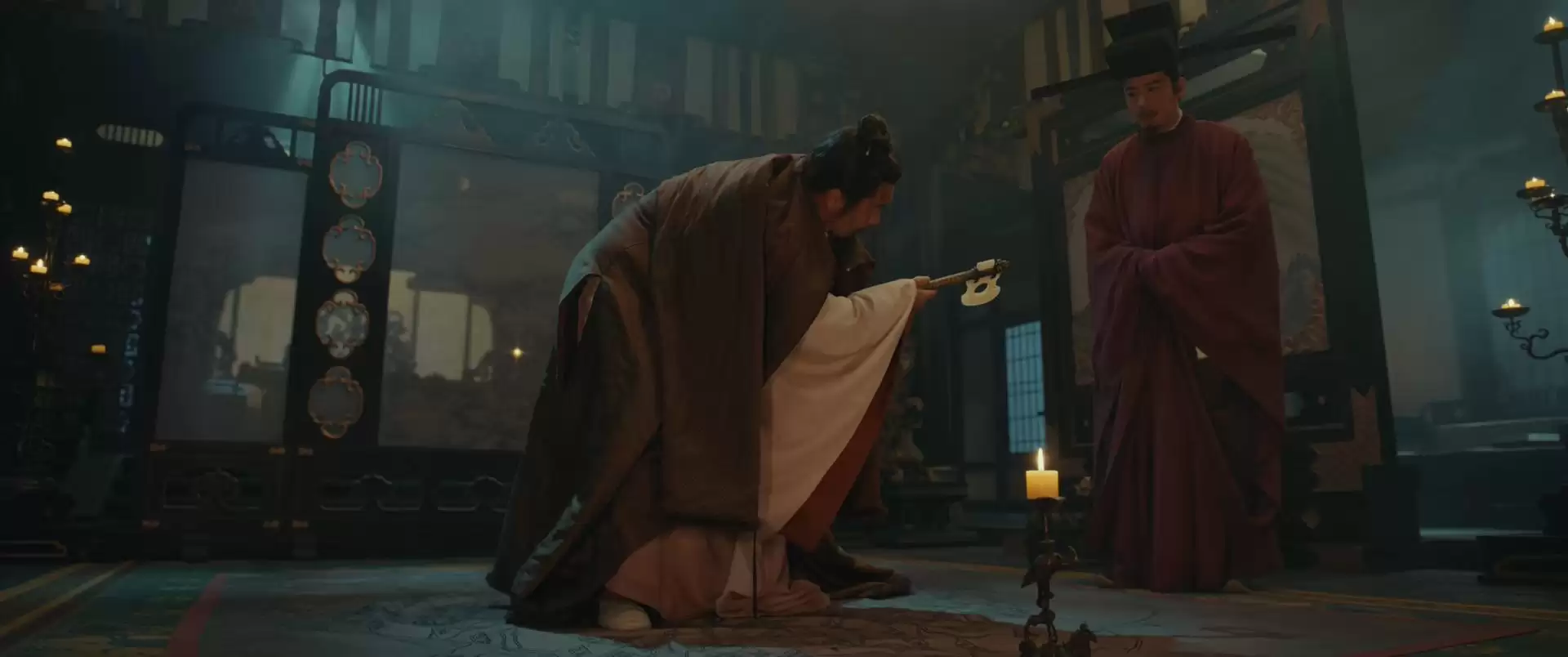 从拖黄袍到坐黄袍,到最后把黄袍遗在角落,他用一生与之搏斗,什么都看明白了。朱亚文迎来自己在《太平年》里最后一场高光戏,撑起复杂的心境。醉酒推门走入大雪之中,他眼神是清醒的。最后那道身影,在漫天大雪里显得格外苍凉。