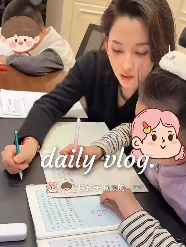 一家三口吃完早饭之后,森林北开始坐下来陪孩子们做作业,女儿有不懂的题目,她会耐心帮其分析解答。