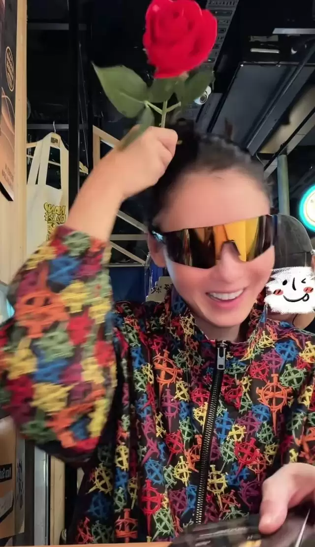 虽说张柏芝已经45岁了,但内心仍是一颗少女心。而这个盲盒所抽到的玩偶也很呆萌可爱,运气不错。随后,张柏芝对着镜头把大儿子送给她的玫瑰花插到了头上。