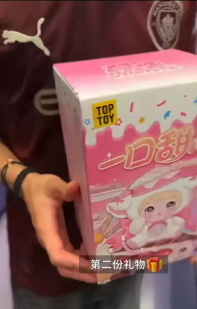 第二份礼物是Nommi糯米儿与阿玛莉莉丝联名的「一口甜心」盲盒,这份礼物更让张柏芝笑开花。