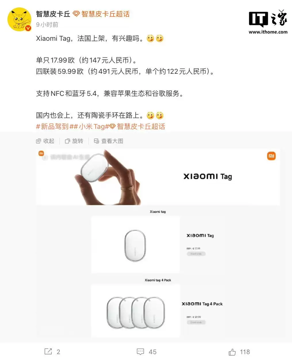 小米Tag国行版即将上市,欧洲售价17.99欧元