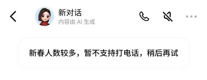 2月16日,据第一财经记者观察,豆包APP的视频通话功能目前暂时无法使用。页面提示显示“新春期间用户量较大,该功能暂不支持”,推测可能因算力资源紧张所致。今日正值除夕,豆包将通过总台春晚的互动环节发放红包。截至发稿前,字节跳动方面尚未对此作出回应。