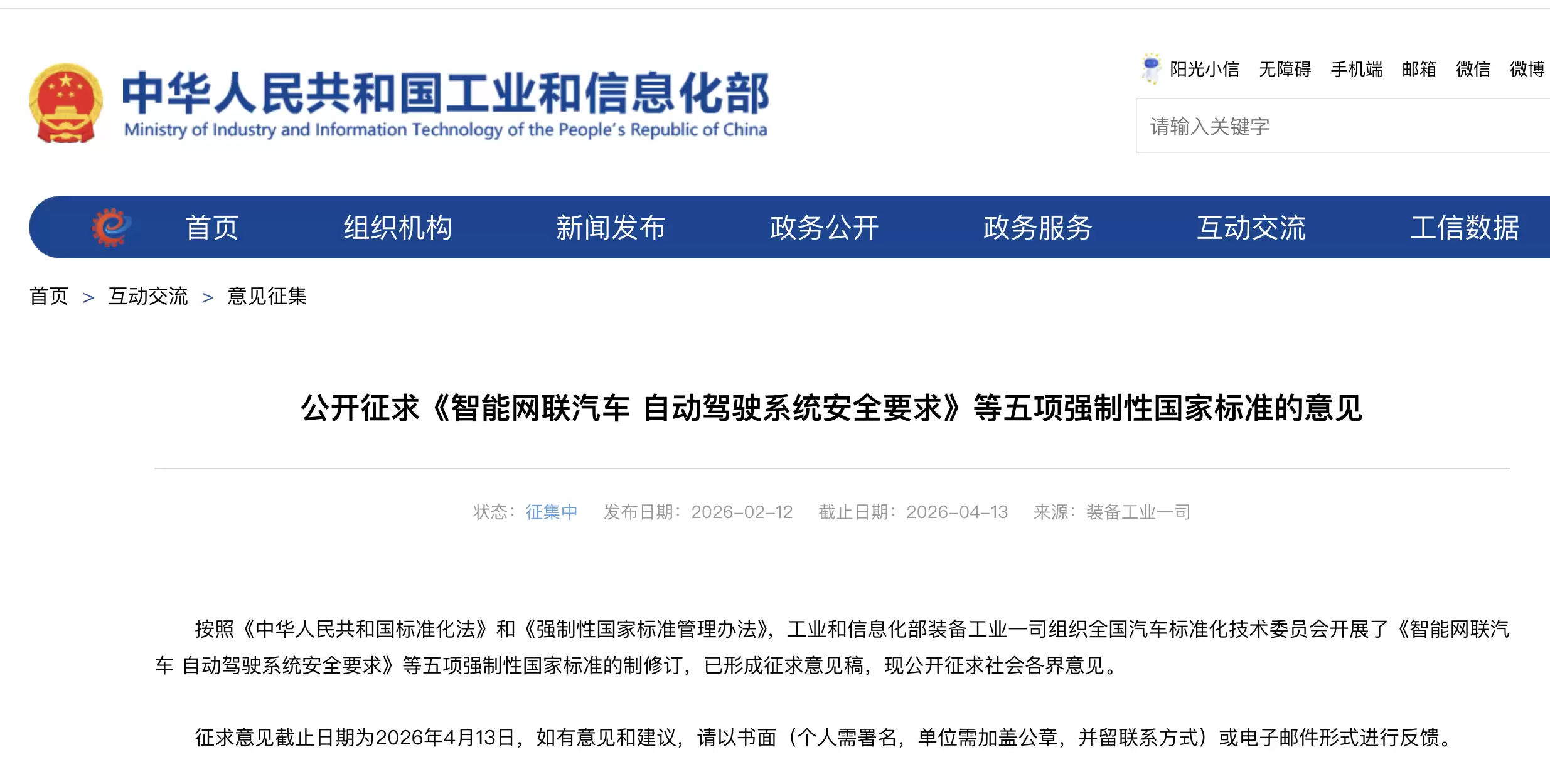 工业和信息化部装备工业一司近日组织全国汽车标准化技术委员会,针对《汽车操纵件、指示器及信号装置的标志》这一强制性国家标准展开修订工作,目前已形成征求意见稿并面向社会公开征求意见。此次修订聚焦于提升行车安全,对多项关键操纵件作出明确规定,要求相关功能必须配备实体操纵件。