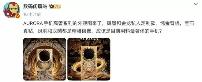 博主 @数码闲聊站 表示:纯金背板,宝石真钻,凤羽和龙鳞都是精雕镶嵌,应该是目前用料最奢侈的手机?