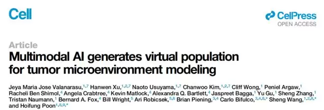 相关论文以《多模态人工智能生成肿瘤微环境建模的虚拟人群》(Multimodal AI generates virtual population for tumor microenvironment modeling)为题发表在 Cell[1]。