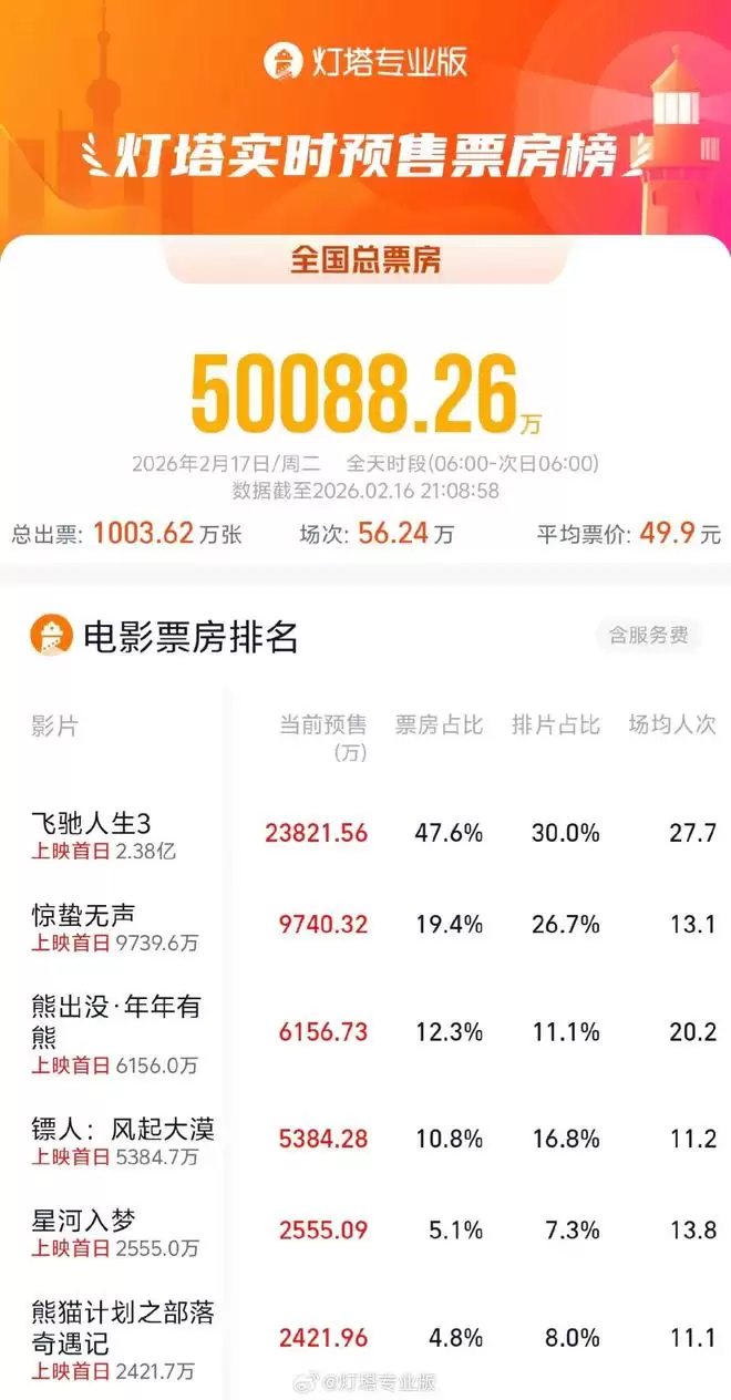 2026年初一预售票房破5亿,春节档首日成绩亮眼