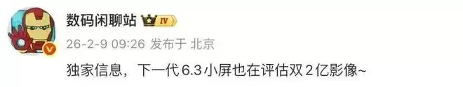 另外,小米后续的新机信息目前已经出现了大量的爆料。博主@数码闲聊站 在爆料中提到,“下一代6.3小屏也在评估双2亿影像”。