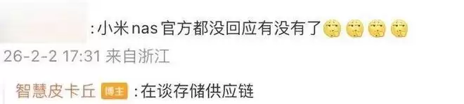 不过,博主@智慧皮卡丘 的爆料显示,小米NAS项目还在,目前还在谈存储供应链,预计今年发布。
