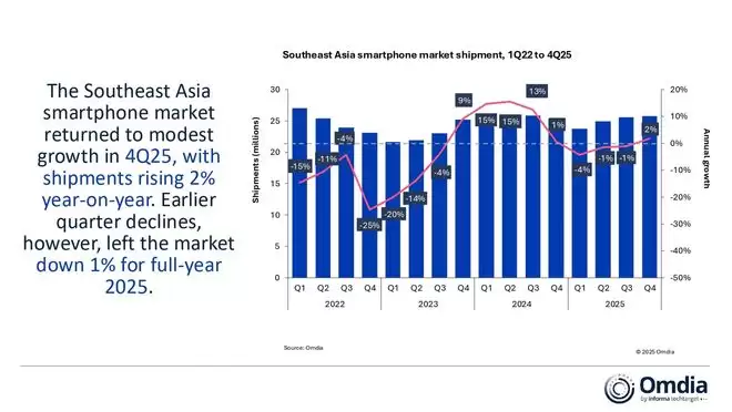 Omdia:东南亚智能手机市场预计2025Q4恢复增长