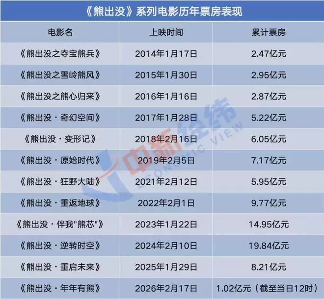 近年来,凭借一年一部的产出频率,《熊出没》成为春节档难得的定数,也让观众养成了“过年看《熊出没》”的习惯。