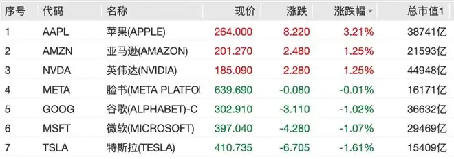 另外,亚马逊、英伟达涨幅均超1%,特斯拉、微软、谷歌等下跌超过1%。