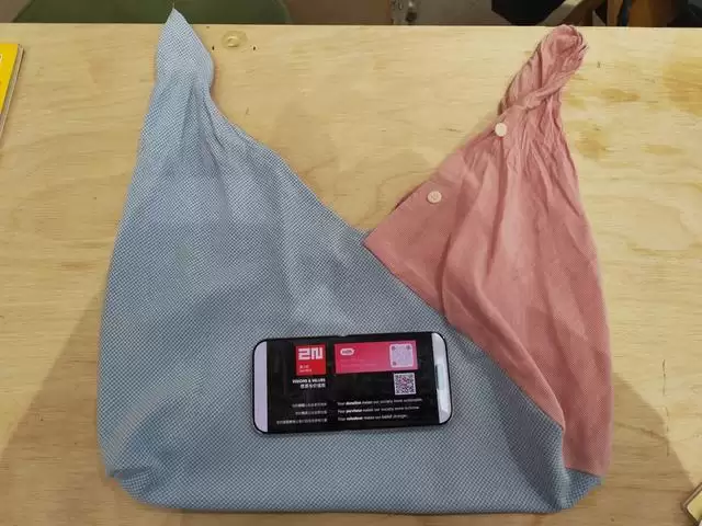 李教授用旧衬衫改造的“回旋袋”。 李蕾 摄影
