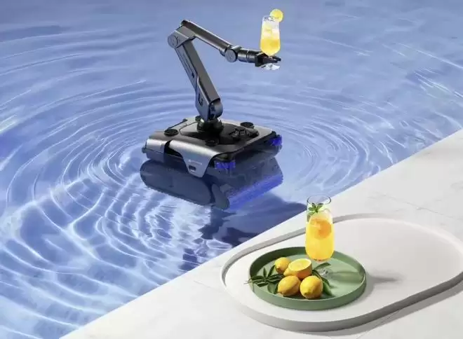 而MOVA泳池机器人Rover Master,延续了MOVA品牌在机械臂领域的技术积累,它拥有一个灵活智慧的仿生机械臂,专为解决异形泳池清洁死角和大型垃圾难吸入的问题而设计,能灵活深入角落清洁,还可抓取水面上的树叶、树枝甚至昆虫。此外它还能在泳池里为人递送饮料。