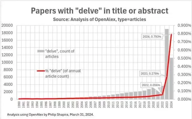 一项估算显示,仅「delve」一词在近期PubMed文章中的出现频率就比2024年底之前高出约400%。
