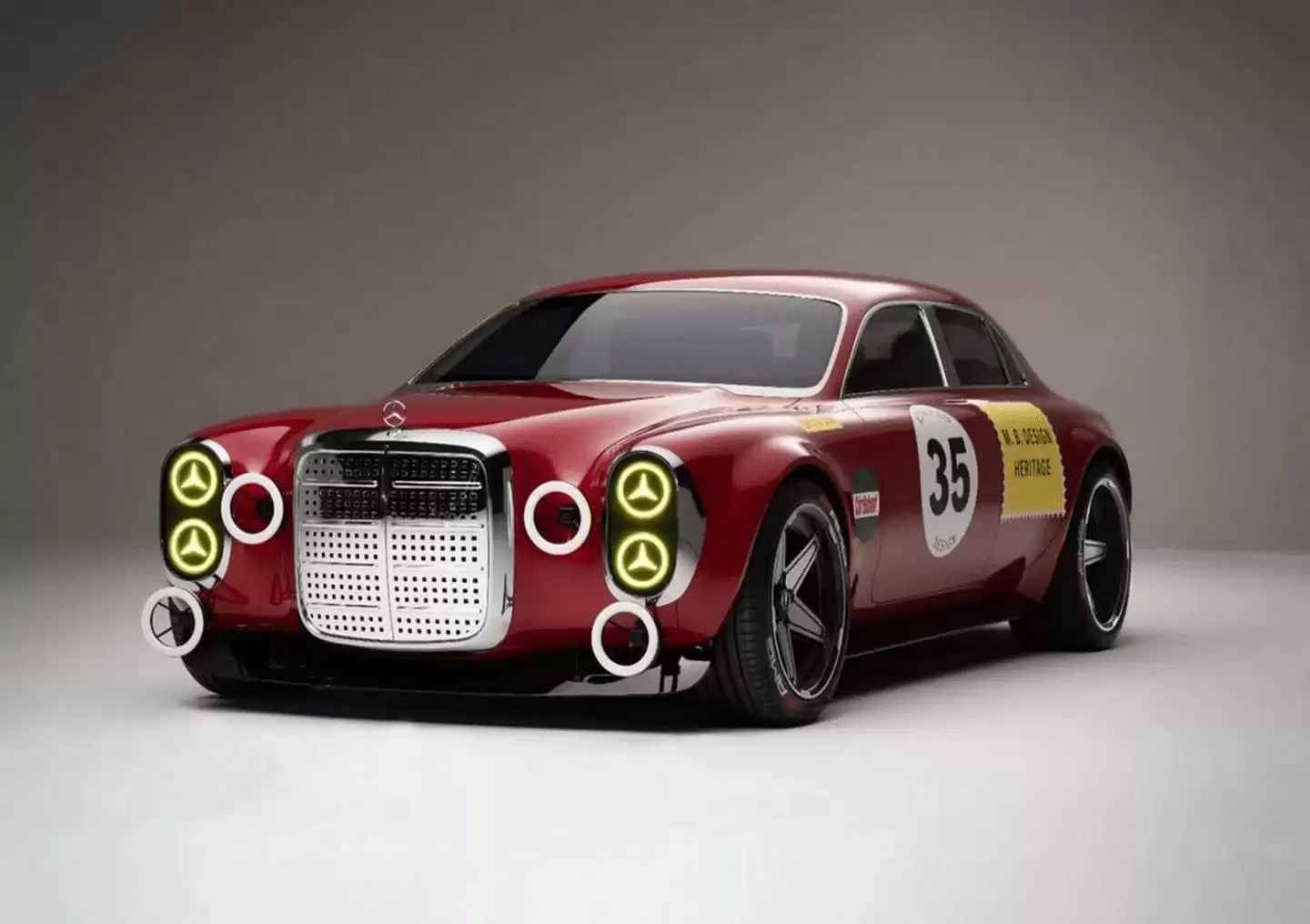 设计团队在车身轮廓上进行了大胆创新。相较于原版300 SEL方正的顶部与尾部线条,新车采用了更圆润的造型,这一改动旨在向20世纪50年代生产的“Ponton”轿车致敬。涂装方面,新车复刻了“红猪”在1971年斯帕24小时耐力赛上的经典红色车身,但将真实赞助商名称替换为虚构名称,例如将Castrol替换为Carlsbad——这正是梅赛德斯先锋设计工作室所在的加州城市。