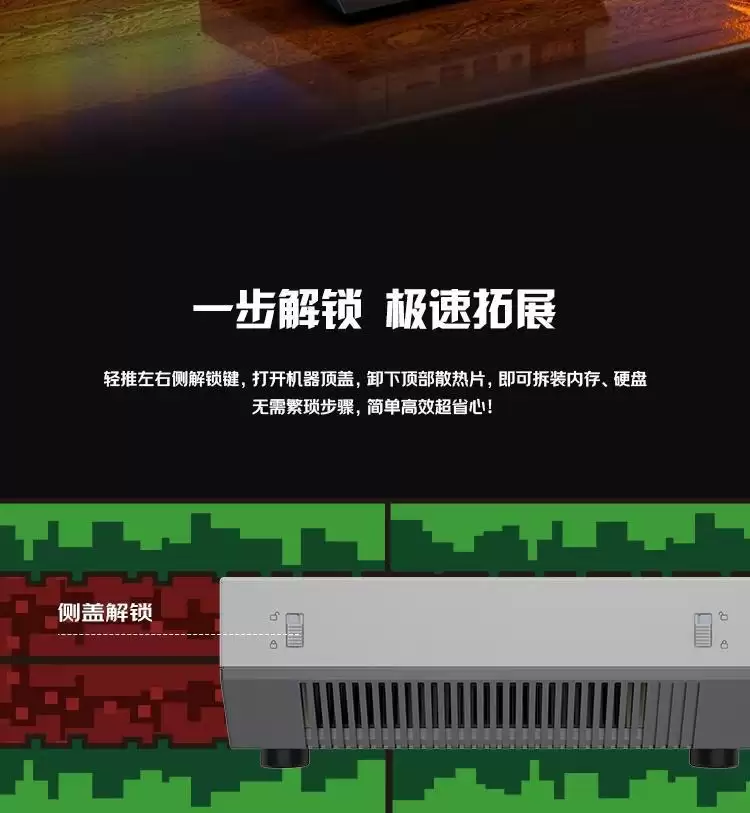 在扩展与存储方面,这款主机配备了双通道DDR5内存插槽以及两个M.2 2280硬盘位,最高可支持128GB内存与4TB容量的PCIe 4.0 x4固态硬盘。散热系统也进行了升级,采用了新一代风冷散热系统3.0,其中包括升级的静音高转速离心风扇、两根散热铜管以及双散热铜鳍片,保证了高性能下的稳定运行。