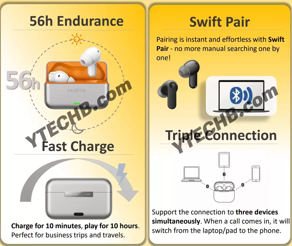 真我Buds T500 Pro耳机曝光:56小时超长续航+主动降噪