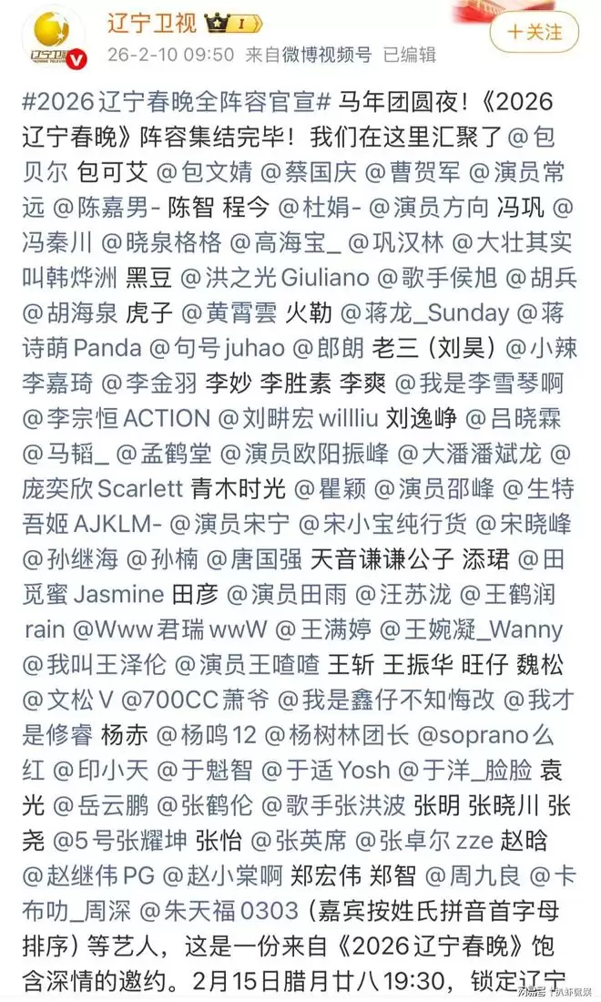 辽宁春晚嘉宾名单揭晓,张雨绮缺席或因“代孕风波”影响