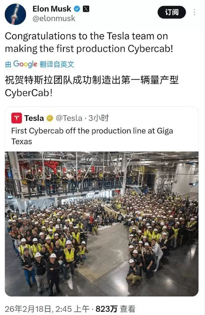 特斯拉在美国得州超级工厂迎来重要里程碑——首款量产车型Cybercab正式下线。公司首席执行官埃隆·马斯克通过社交平台发文,向研发团队致以祝贺。这款完全取消方向盘与踏板的车型,标志着特斯拉在无人驾驶出租车商业化领域迈出实质性步伐,全球出行方式或因此迎来颠覆性变革。